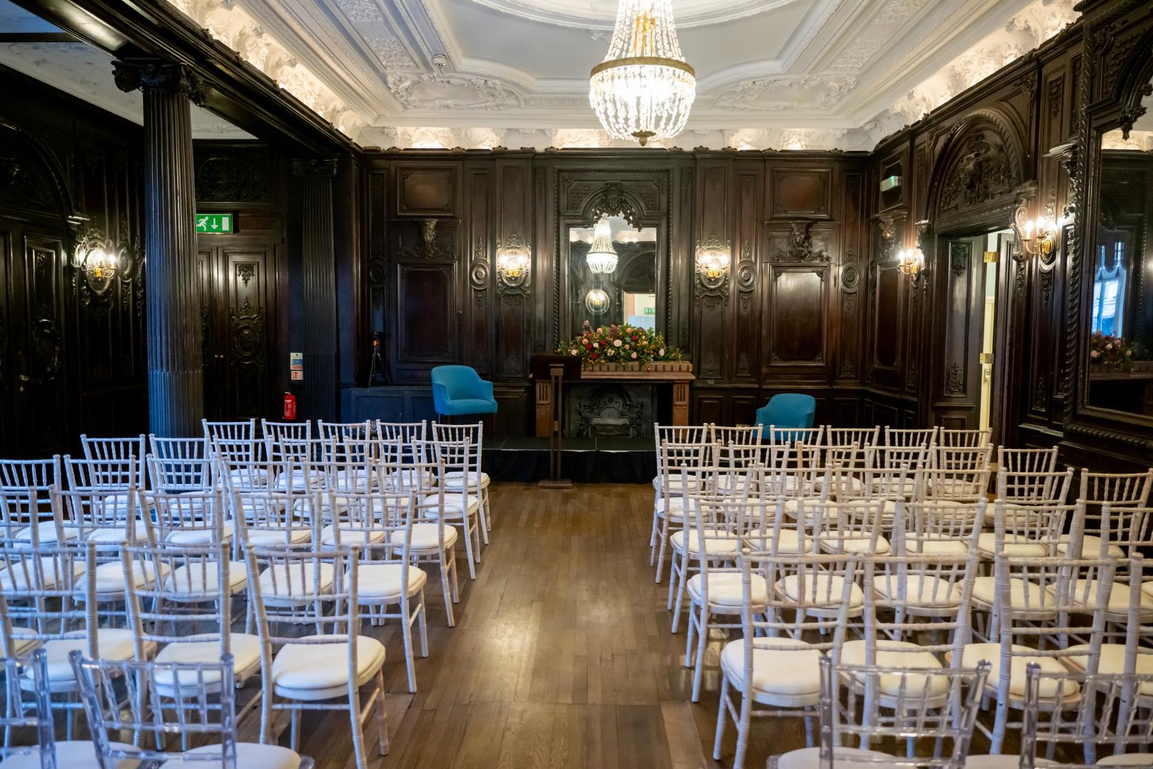 The Churchill Room is a space full of character. It is ideal for ceremonies and smaller celebrations. Licensed for civil weddings, it has wooden details, a grand fireplace, and traditional décor. This room offers a historic, formal feel.