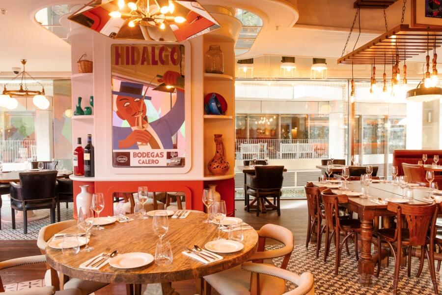 The ground floor bar at Camino Victoria seats 60 inside, with a heated terrace offering 60 more for all-weather socialising. Refreshed with bold tiles and warm tones, it’s ideal for after-work drinks or casual meetups.