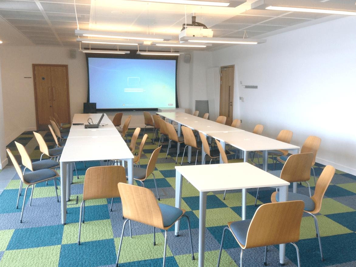 This space is excellent for workshops, seminars, and training sessions. It welcomes 60 people in total and supports multiple arrangements. The room also includes a projector for presentations.