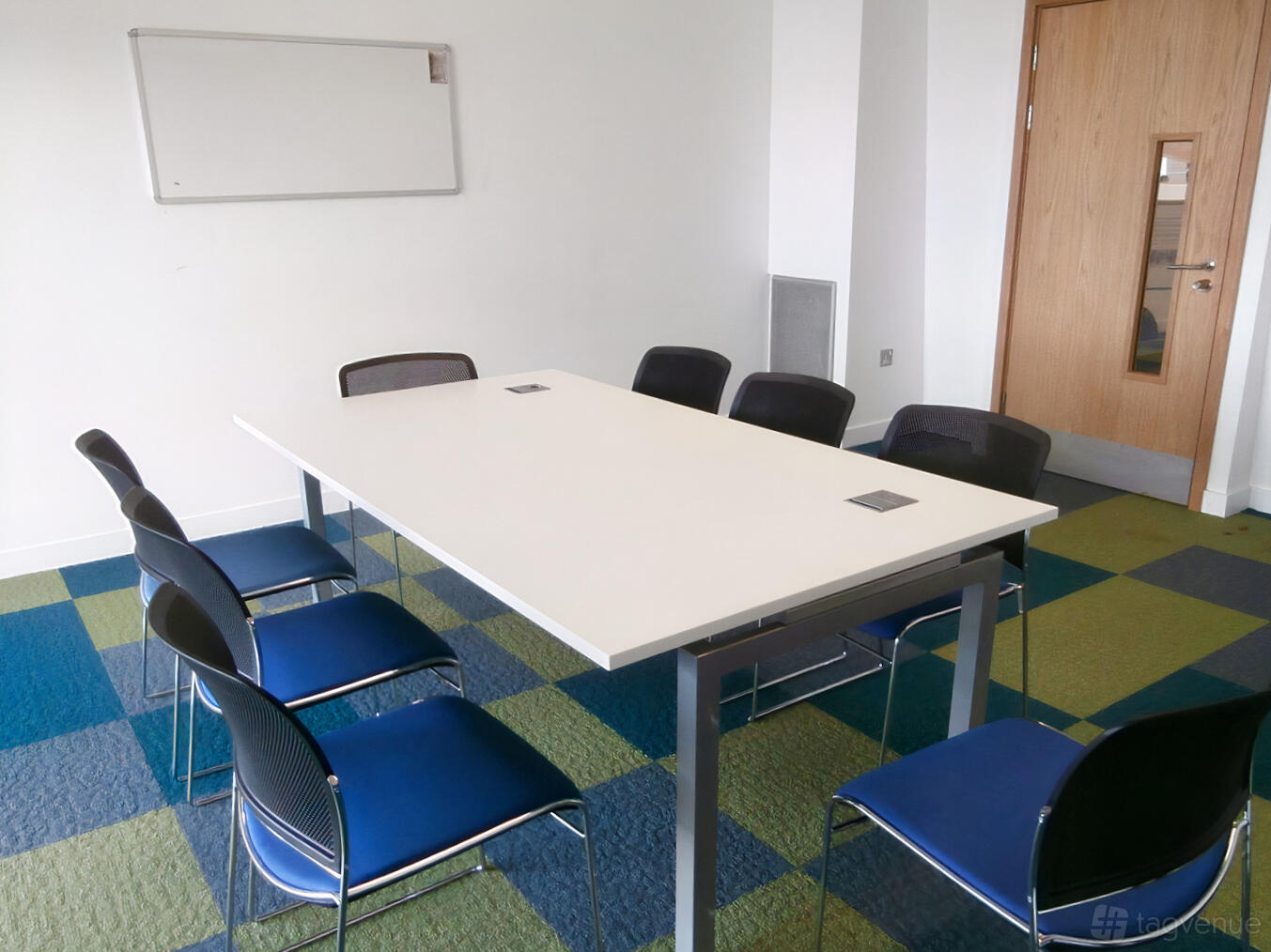 The setting provides a quiet and comfortable environment for focused conversations. Wi-Fi is subject to availability, and a whiteboard is also included.