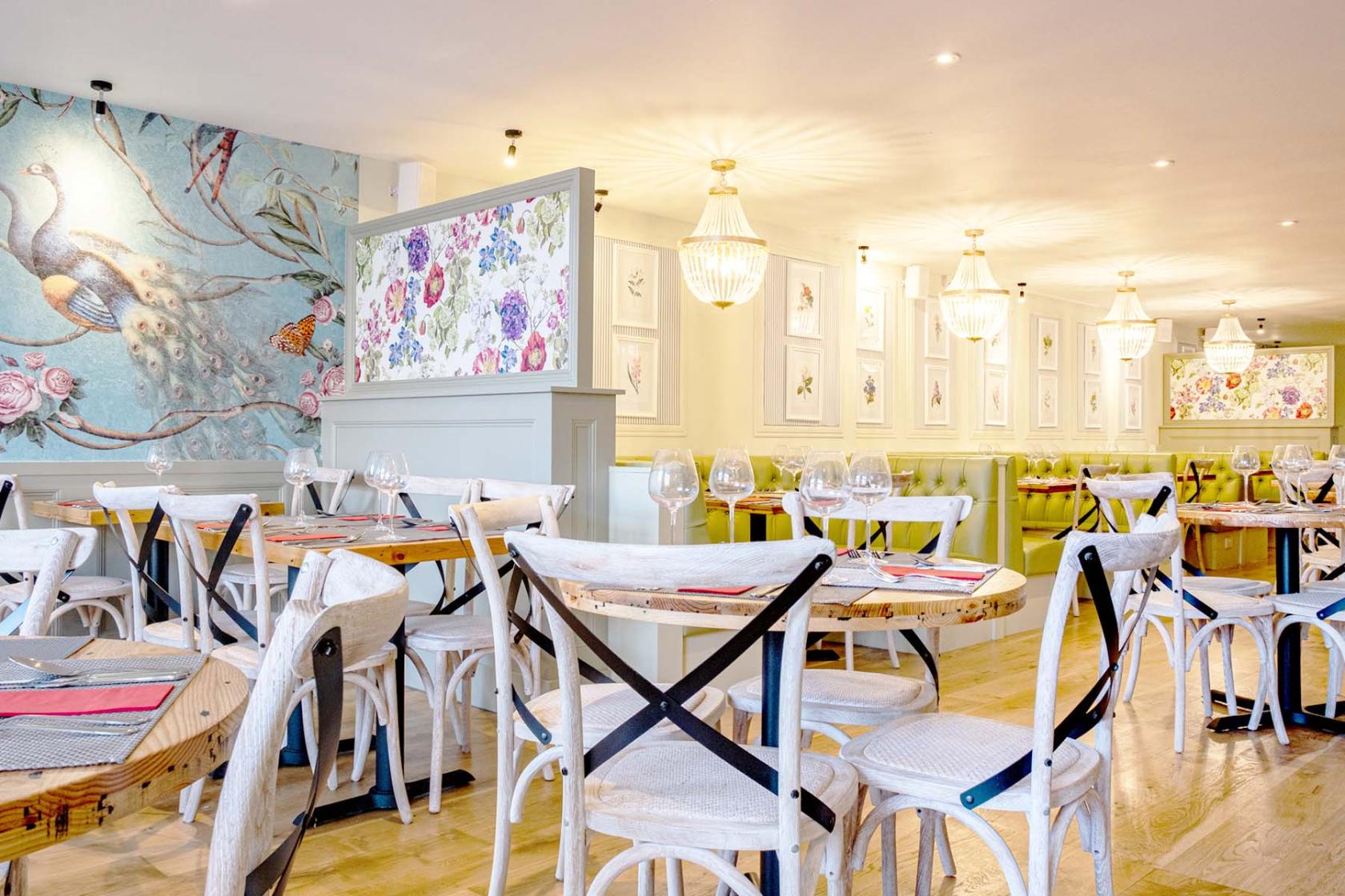 A light and floral-themed restaurant with our feature bird murals and exotic botanicals but also friendly service and a relaxed atmosphere. The walls feature framed panels of wallpaper with various floral patterns. There's a sage-green, button-tufted booth-style seating section. Feast your eyes as you enjoy fresh, authentic Thai food. Our feature bay window offers a fabulous space for a special celebration lunch or dinner with a large oval table which is perfect for sharing dishes and giggles.