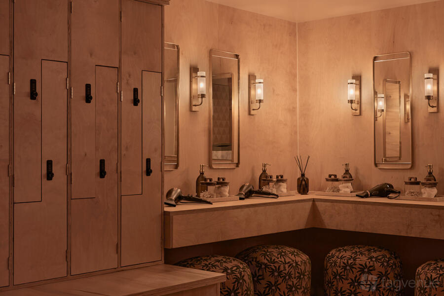 The Sensorium is a 90 sqm spa with 360 degree audio spread across two rooms designed around contrasts of sun and the moon, fire and ice. Immersions move between a 45 sqm 60-90 degree sauna, cold mist and rain showers, and ice baths.