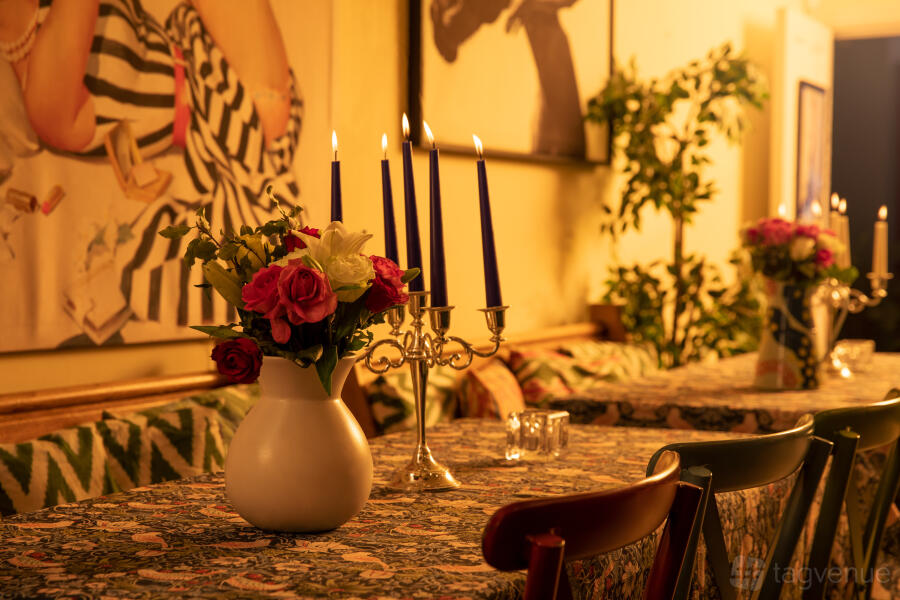 With comfortable sofas, a fireplace, and a spacious bar, this is the perfect place to enjoy the best parts of a house party, with our main room connecting to the other spaces, making it ideal for bookings that don’t require full privacy. Plus, it features our DJ station, which is available at 9:30 pm every Friday and Saturday night.