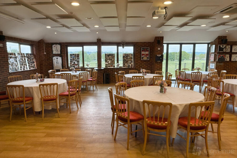 The Ted Ivens Clubroom is our upstairs space, with beautiful views across the pitches towards Box Hill, a balcony area, bar, projector for use and ample natural light. This room is equipped with everything you will need to host a fantastic event. Our projector can be connected to anything using an HDMI cable allowing for easy use with laptops and more mobile devices. We also are fully accessible with a lift and disabled bathroom for use by guests at the club.