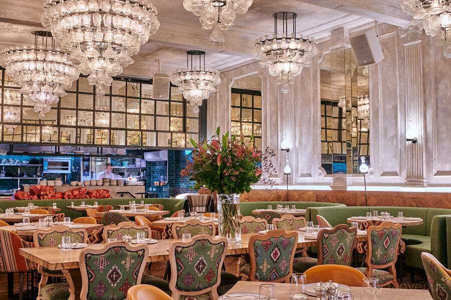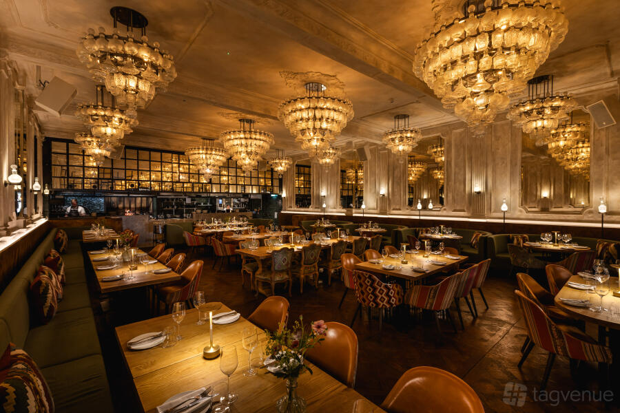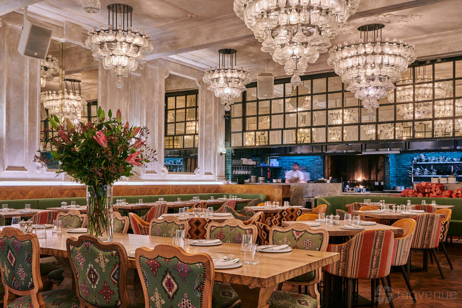 The décor replicates Argentina's unique heritage: warm, inclusive and lively. The open kitchen plays host to a dramatic fireplace and wood oven, placing the chefs at centre stage. Our entire dining room is available for exclusive hire,