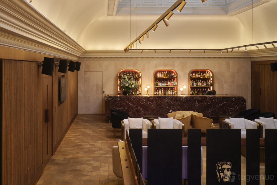Richard Attenborough Rooms at Bafta, 196 Piccadilly Circus, can host up to 150 guests in a lounge style. The space includes 9 x AV plug-in panels (floor boxes), 3 x digital signage displays, QSC Professional audio, and a video & room.