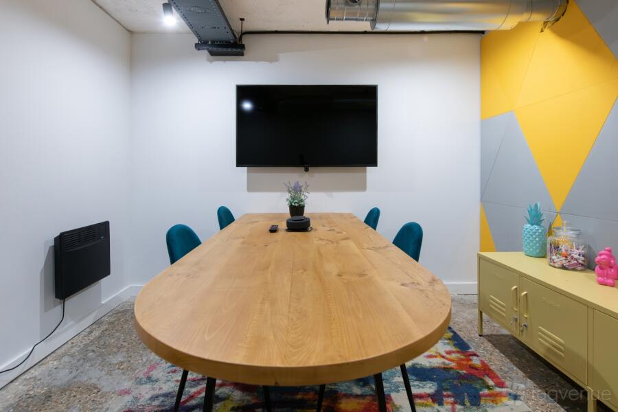 Perfect for one-on-ones or small group sessions, this meeting room offers comfort and functionality in a modern setting.