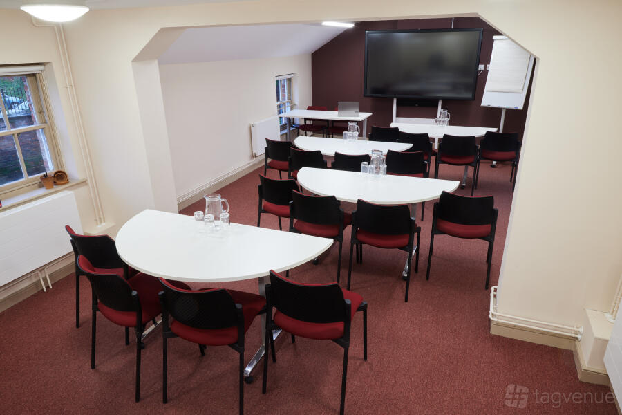 We can accommodate up to 35 delegates per room, depending on the layout. Each space includes a deluxe screen for your presentations, flip charts and hearing loops.