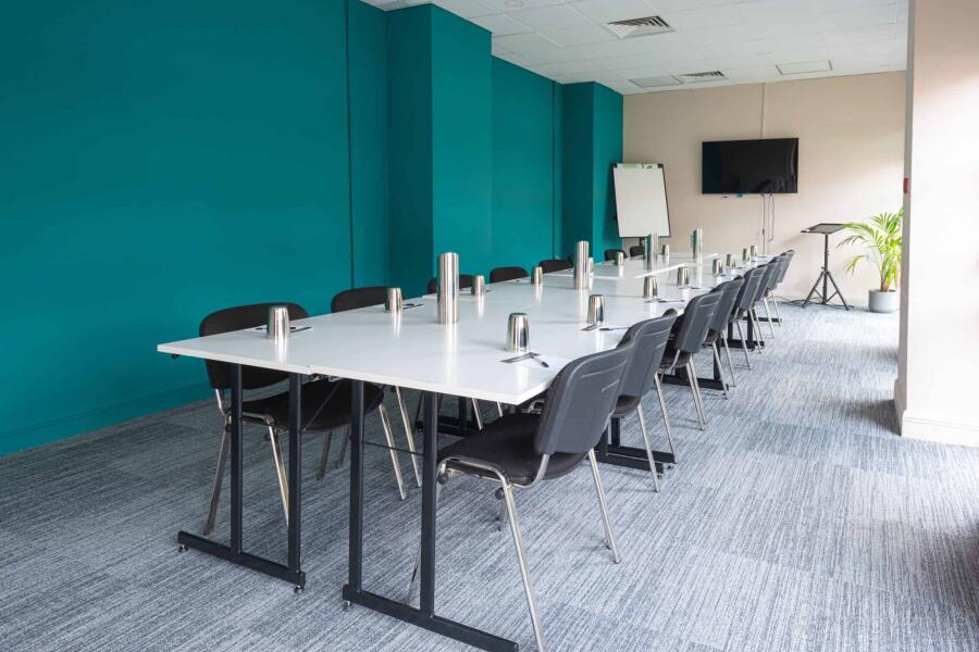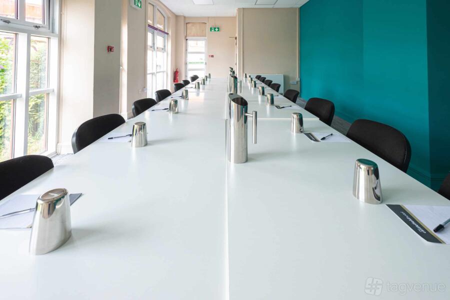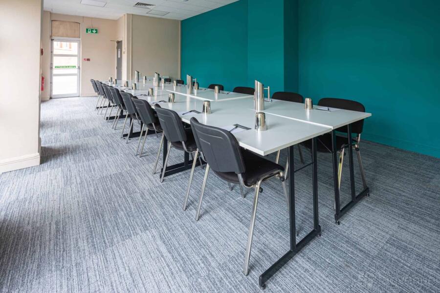 This is the perfect room for larger conferences. It is tastefully decorated and has natural daylight with air conditioning.