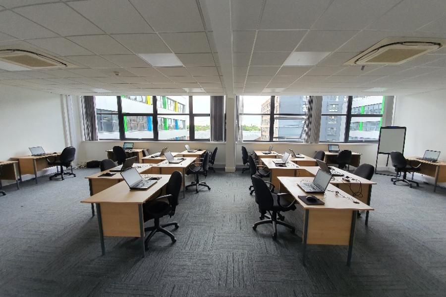 International Testing & Training Services has created one of the best computer based test centres, training centres and conference meeting room. It is located at Universal Square right in the heart of Manchester in United Kingdom. This is an exam/training room with desks and all computer materials that can be adjusted for computer-based testing, paper-based testing, training and all other classroom events.