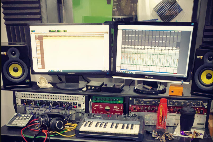 Recording, mixing and mastering takes place in the control room, we have a selection of quality outboard gear as well as a fantastic collection of digital plugins. We have valve guitar amps and guitars available for use on request. We also provide drum arrangement/beat creation services should the occasion call for it.