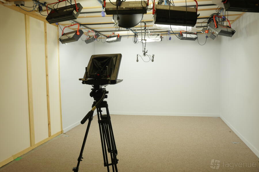 The space is provided pre-lit which means you need only arrive and at the flick of a switch you're ready to go live. As a green screen space, you have access to a wide variety of technology to make your production a success. Not only have we the latest and best cameras but we have green screen treadmills turntables and live keyers. The latter means you can see your finished key as you shoot. This means that we can add a virtual; set to make your presenters appear to be anywhere in the world and interact as though they are really there.