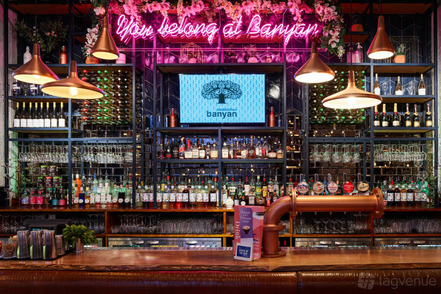 Taking residency in the Corn Exchange is Banyan Bar & Kitchen. The striking architecture of the Corn Exchange enhances the charm of our space, with its beautiful blend of historic elements and contemporary style. Floor-to-ceiling windows flood the Main Restaurant and Bar with natural light, while exposed brick walls and elegant design touches create an atmosphere of relaxed sophistication.