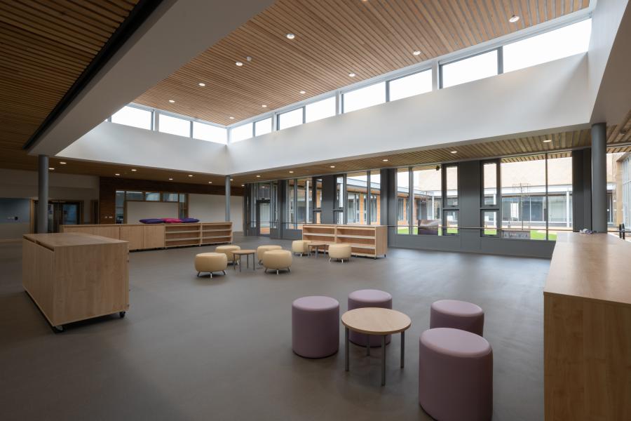 The Hall provides a beautiful conferencing and event space, centred on flexibility. Its tiered bleacher seats combined with floor seating can accommodate up to 220 people in a theatre style set up, and has the option to be removed altogether, with wheelchair access on all levels. Its full-length windows and integrated projection facilities make it the perfect space for a range of presentations. It can host a banquets.