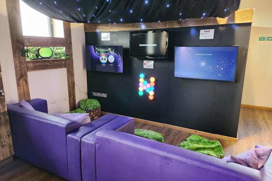 Welcome to Creation Station at The Hideaway Manchester! This open space includes a small craft table, hard and soft floor areas, and a space for messy, water, and sand play.