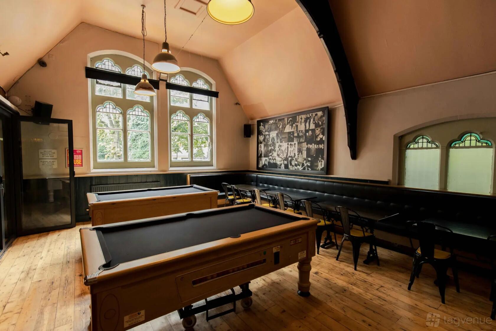 The Snug Room features a cozy pool table area illuminated by natural light from a large window, creating a warm and inviting atmosphere. Patrons can enjoy a game of pool while taking in the scenic view outside, making it a delightful spot for both relaxation and recreation.