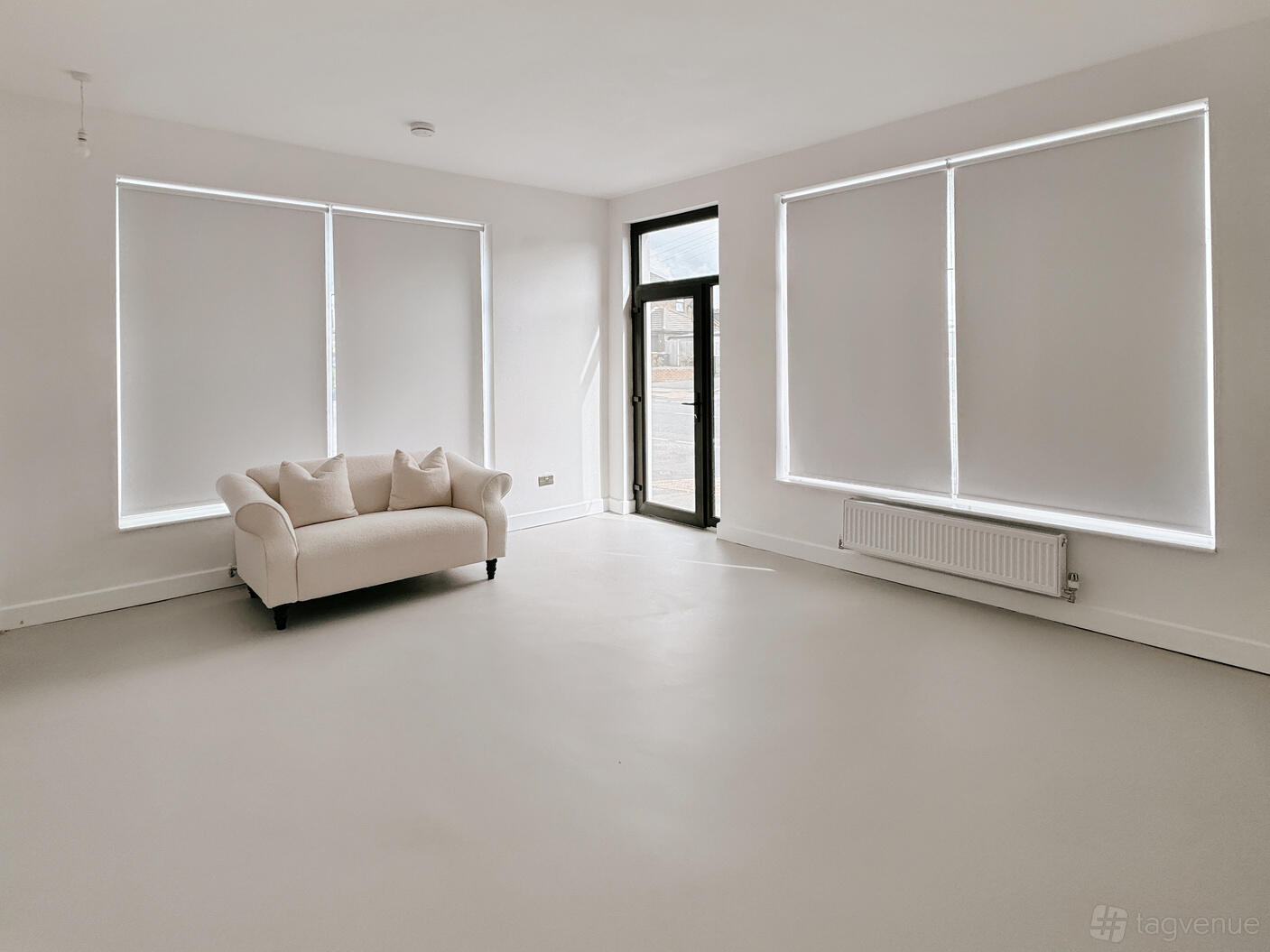 This photo studio includes three well-appointed makeup stations, perfect for makeup artists, beauty brands, and tutorials. The room has 2.5-meter ceilings paired with a sleek and minimalist style. Ideal backdrop for various types of content. No need to lug heavy props up the stairs, as the front door offers quick and easy access.