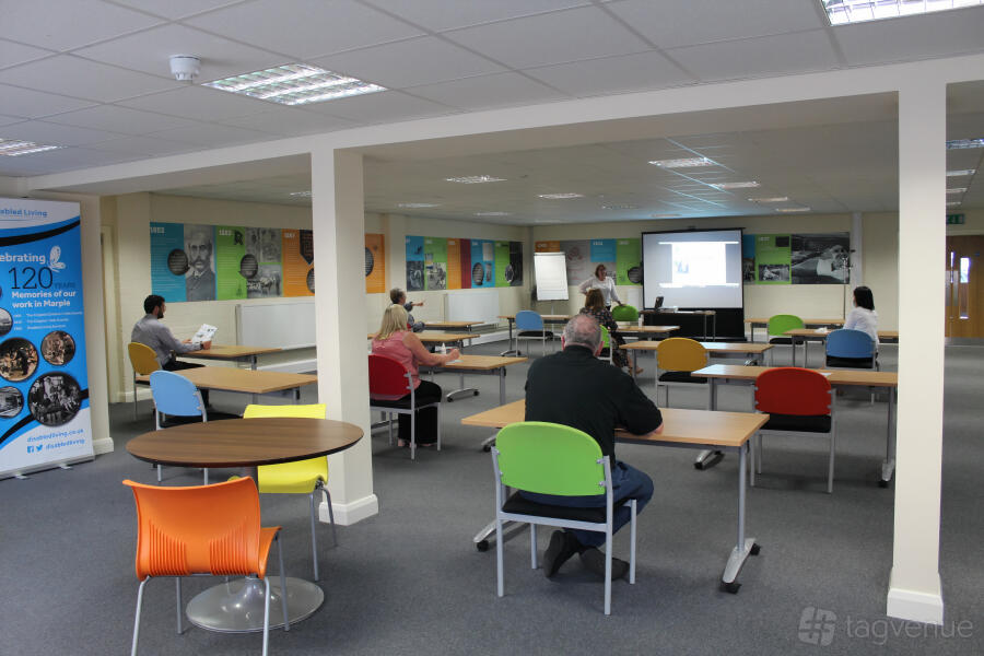 We offer four flexible meeting and training rooms ranging from around 55 sqm to 300 sqm, accommodating from 1 to 60 people. All rooms are equipped with a projector, laptop, flipchart, and speakers at no extra cost. The venue also has sensory rooms and office space primarily for health and social care organisations. Booking with us directly supports our charitable work.