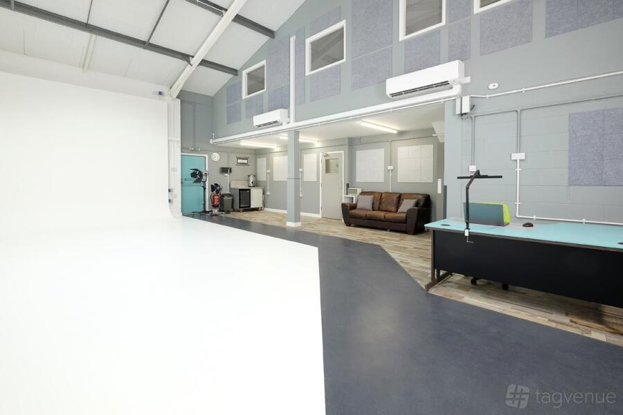 The Stafford Suite is on the ground floor, adjoining the studio via a short corridor. This area can be used as a green room to sit and relax between shoots, making use of the comfy sofa and workstation.
