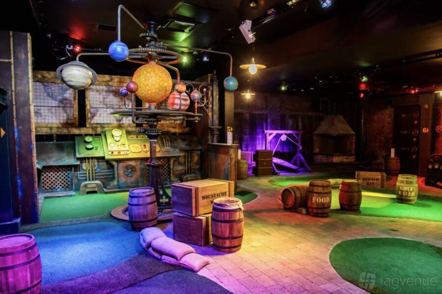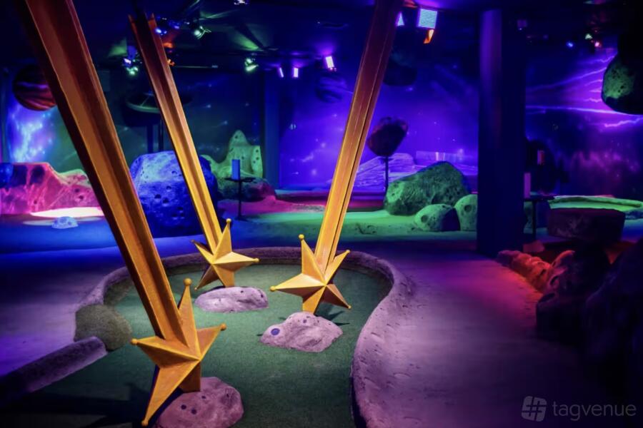 Dust off your moon boots and go on an intergalactic crazy golf adventure at Mr Mulligans Newcastle with three epic space-themed mini golf courses that take players through a secret spaceship hangar, a cosmic storm and a crash landing on the moon.