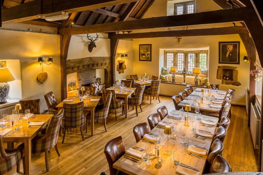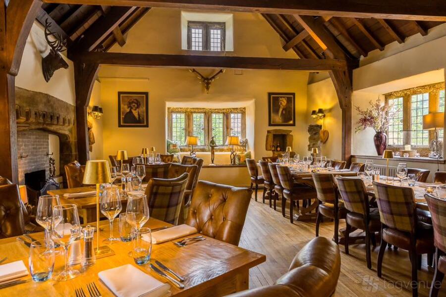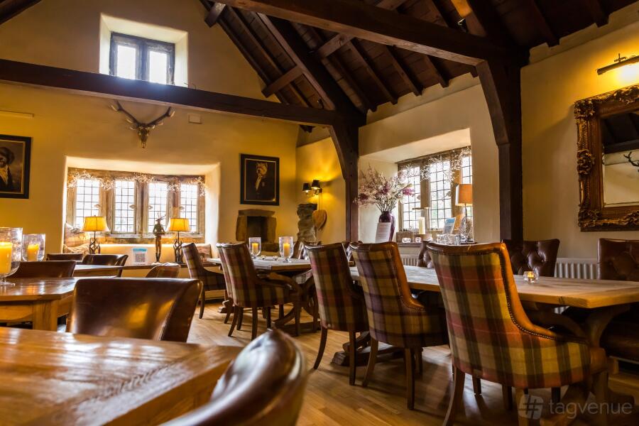 There are two spaces available for private hire: The Minstrel Gallery and the Tipi Buffet. The decor is very cozy, with wooden furniture, comfortable armchairs, and warm light.