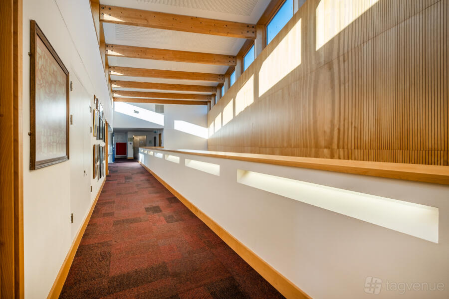 The Ruskin Hall Executive boardroom is suitable for small intimate meetings, seminars, training sessions and private screenings of up to 14 guests. The room is equipped with an LCD screen and room has an abundance of natural light, creating a favorable setting for any function. Catering can be provided on request.