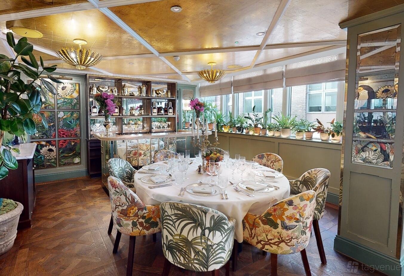 The room also features a stunning private bar and an eclectic mix of botanical print dining chairs. Our dedicated Event Manager is always available to assist with any aspect of your event, ensuring that your special occasion is perfect.