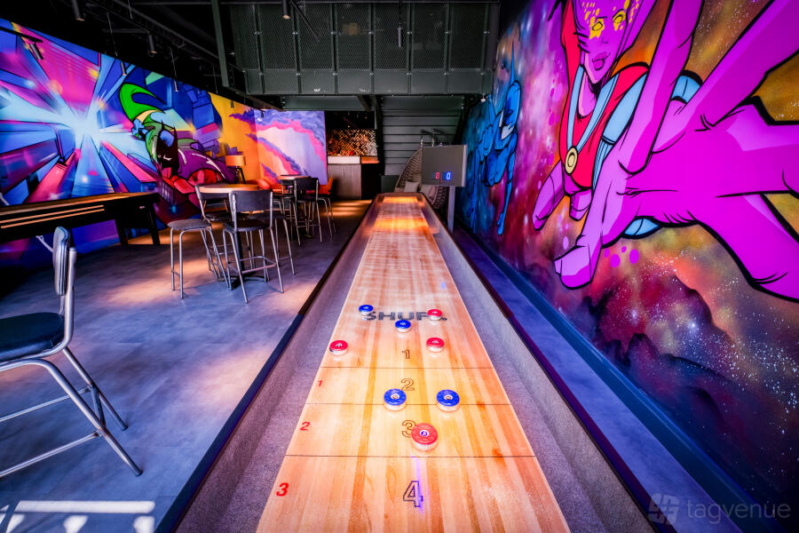 Planning an event that’s all about energy, excitement, and fun? Our semi-exclusive space is the perfect spot! Featuring four shuffleboard tables, interactive darts, curling, axe throwing, and plenty of lounge seating, it’s designed to deliver a unique and unforgettable experience. Whether you're organizing a corporate event, birthday celebration, or private gathering, this space strikes the perfect balance between engaging entertainment and relaxed socializing.
