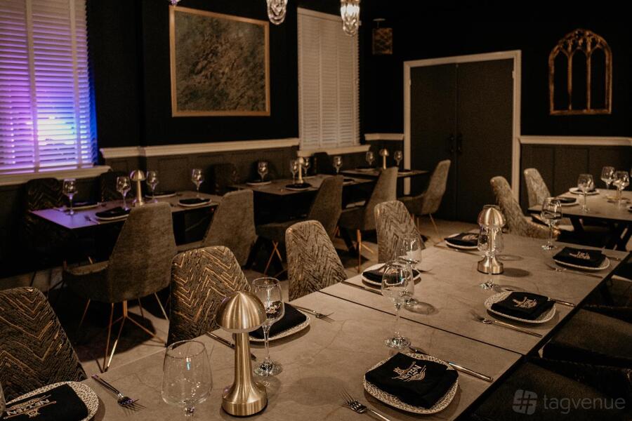 The setup is flexible - tables can be moved around to match the vibe of the event, and the space can be decorated to fit the party theme.