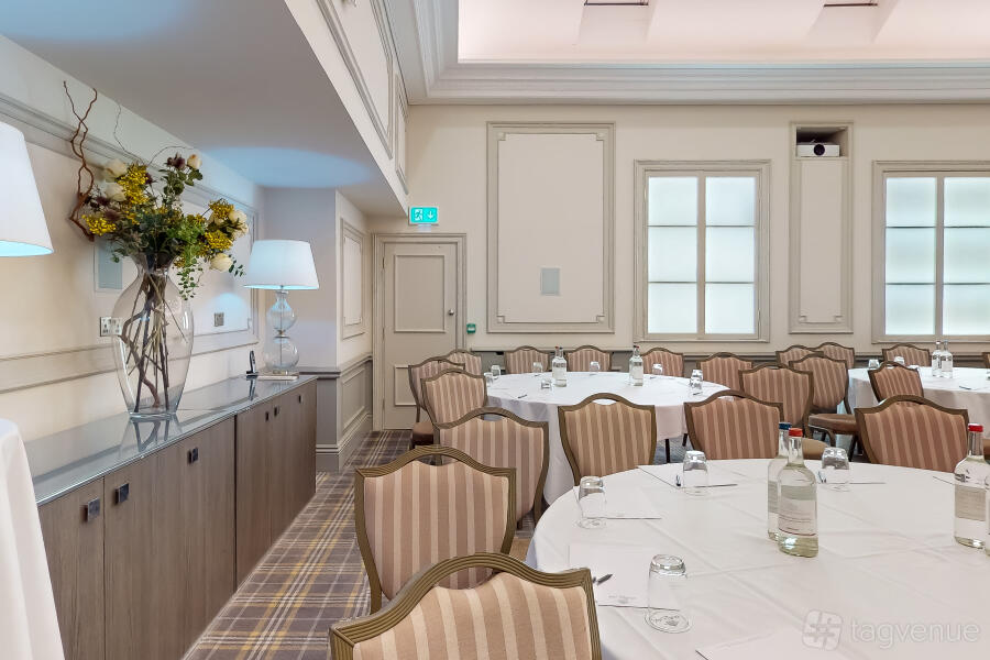 The Garden Room also benefits from a feature fireplace with backlit bookshelves and is ideal for private dining and champagne receptions as well as a relaxed meeting or break out room.