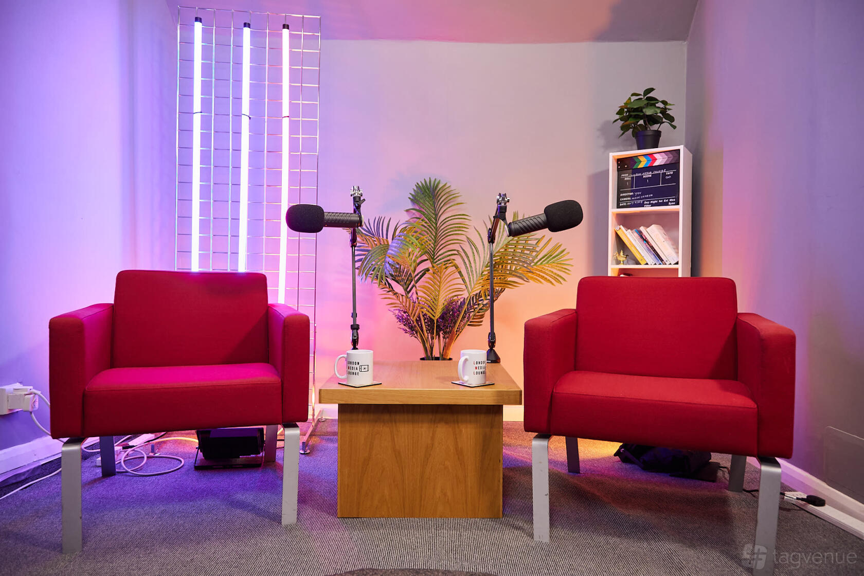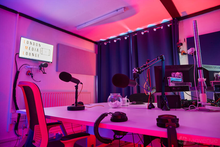 London Media Lounge is a multi-space center dedicated to content creation, podcast recording, video production, and interviews. All spaces come equipped with lighting, audio, and cameras, with an engineer present on-site.