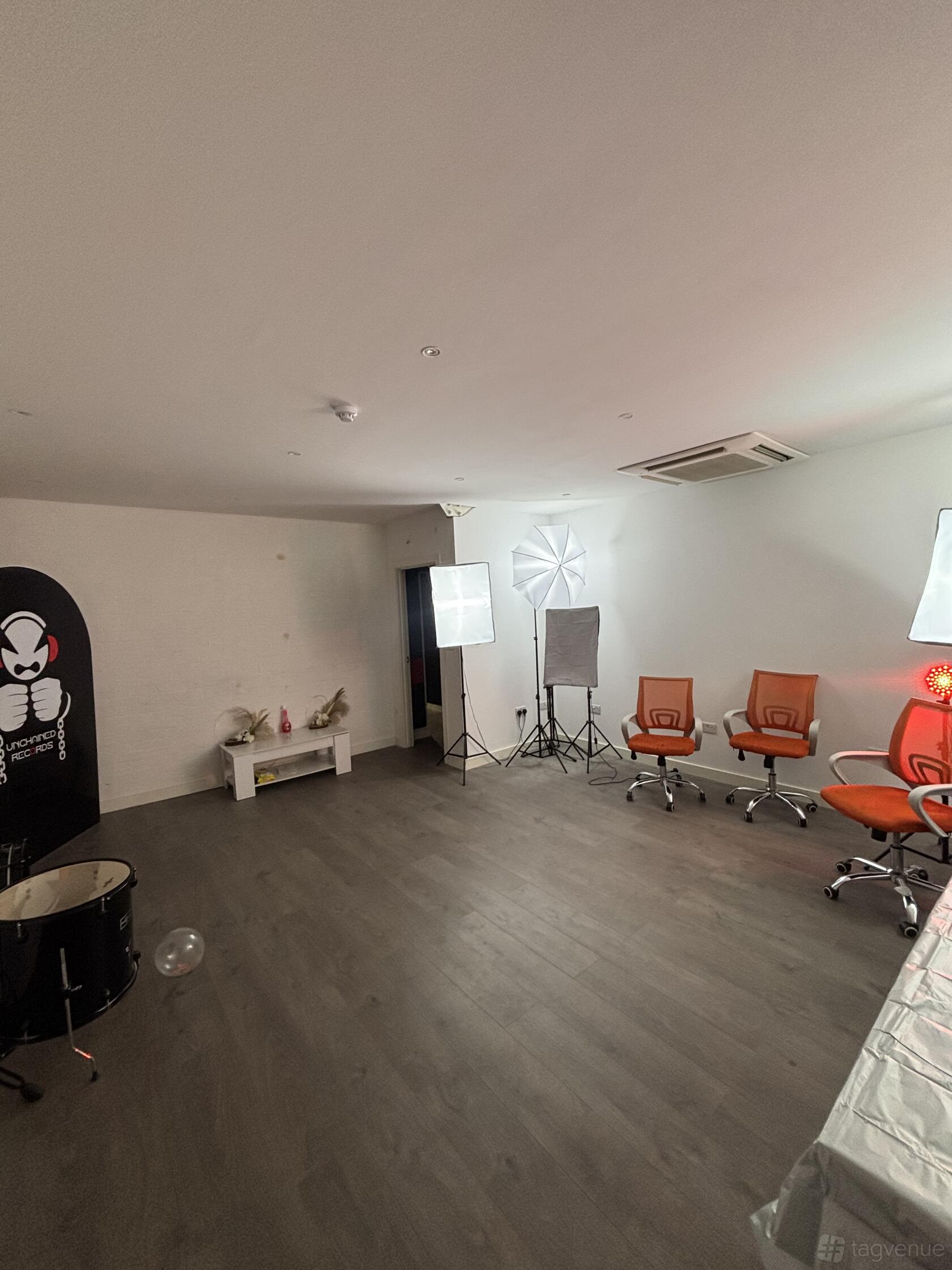We also have a specific photography and video section with high-grade lighting, softboxes, and backdrops, ideal for photoshoots, music videos, interviews, and content generation.