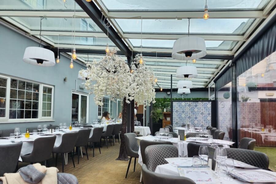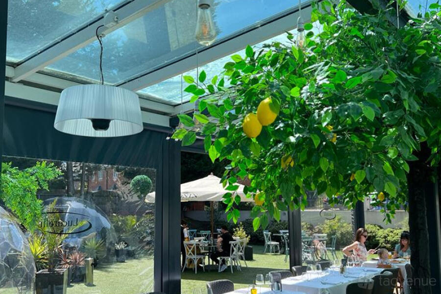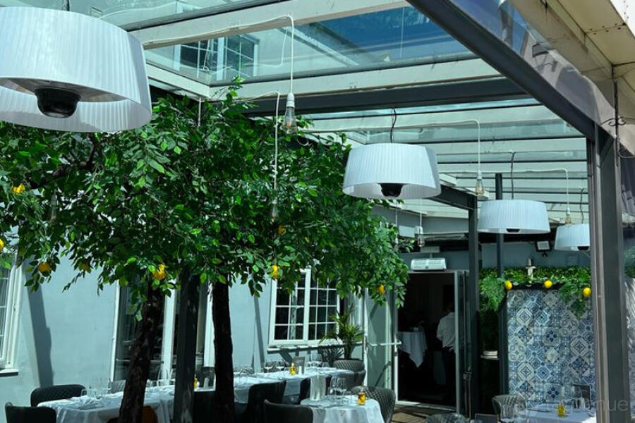 One of the unique features of this culinary haven is the enchanting conservatory. Bathed in natural light, this space offers panoramic views of lush greenery that create a serene backdrop to your dining experience. The view is further enhanced by domes with tables, adding to the unique atmosphere.