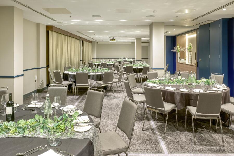 The hotel contains 14 meeting rooms and event spaces that can be adapted to any configurations requested by clients. Capacities range from smaller meetings of boardroom style to presentations for up to 100 in theatre style. If bigger numbers of delegates come for one meeting, there is a provision for seating arrangements for 150 utilising combined rooms. All the rooms are equipped with current high-bandwidth Wi-Fi connection, HDMI-ready AV equipment and a selection of setup styles every day of the week, including boardrooms, classrooms, cabarets, or dinners.