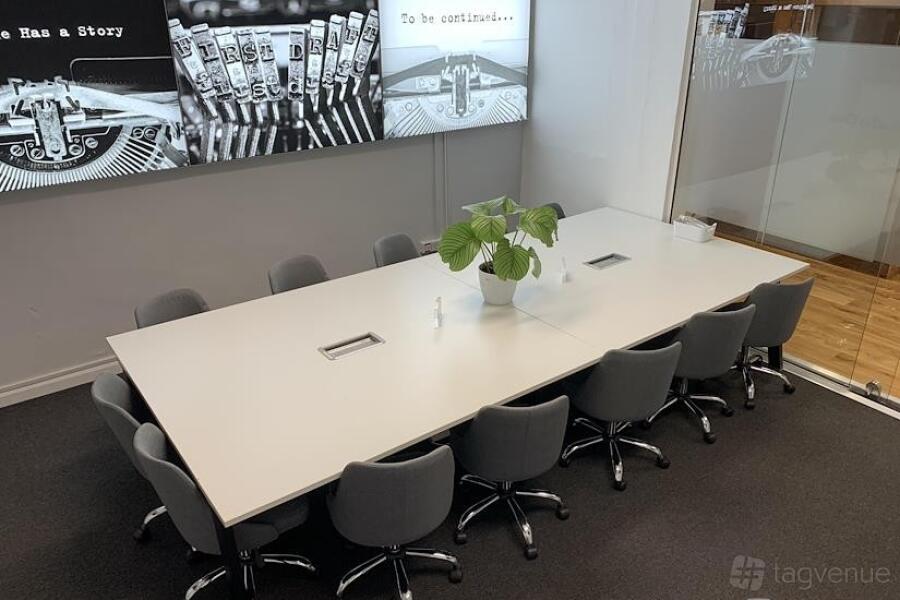 This spacious and well-equipped meeting room provides a professional and comfortable environment for up to 18 people in a boardroom-style setup. It is ideal for productive discussions and presentations.