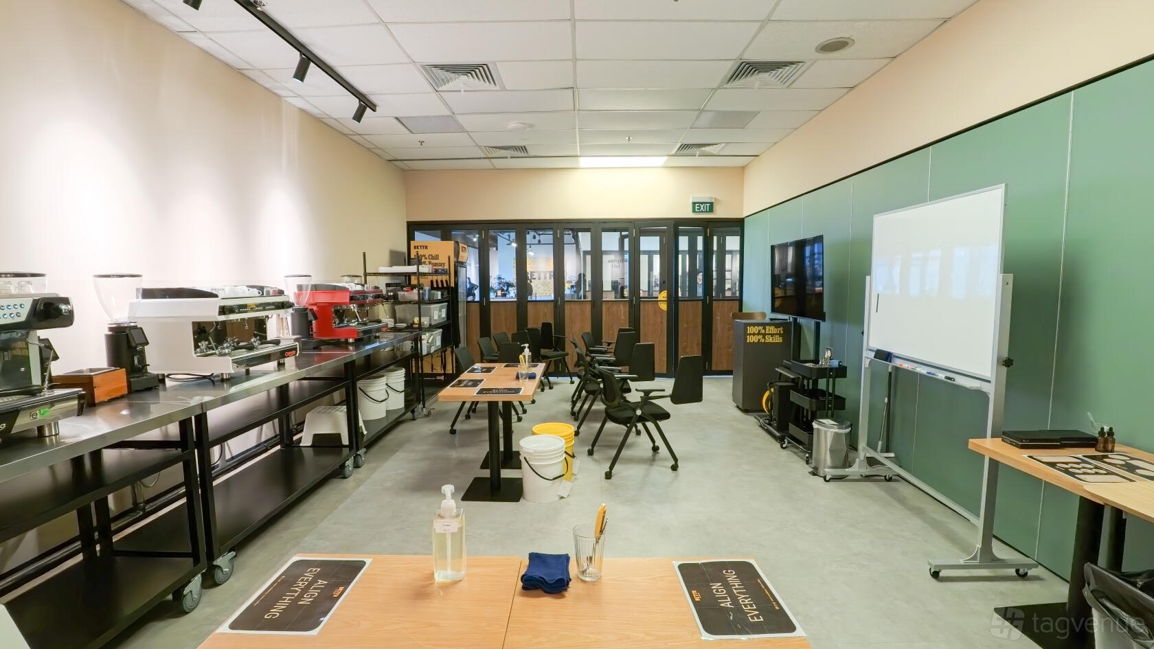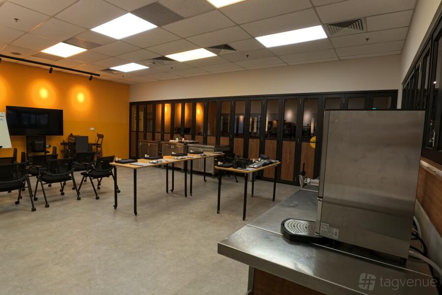 Espresso Lab 1 is a 505 sq ft classroom space located within Bettr Academy, ideal for meetings or training sessions. For larger events, it can be combined with Espresso Lab 2 and 3, creating a total space of 1,434 sq ft. The room comes equipped with Wi-Fi, a flatscreen TV, a whiteboard, and a flipchart, providing everything you need for a productive session. With air conditioning, ample natural light, and a quiet atmosphere, it ensures a comfortable and focused environment.