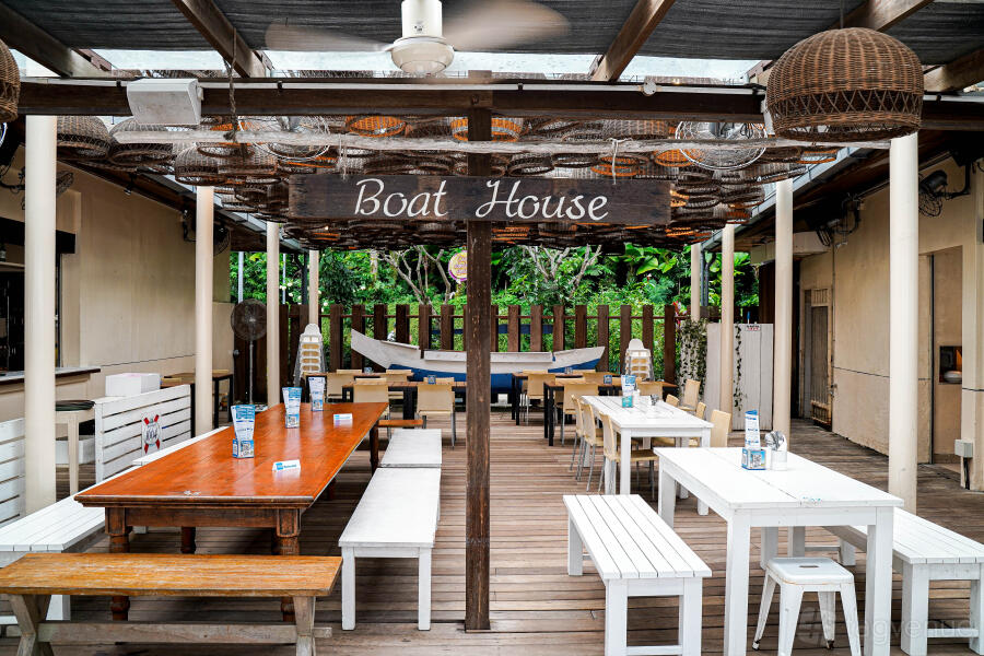 Choose the Boat House for a cosy sheltered events space. Suitable for small to medium sized groups. It has its own private entrance and beautiful hanging Balinese lamp shades that exudes a cosy and rustic charm.
