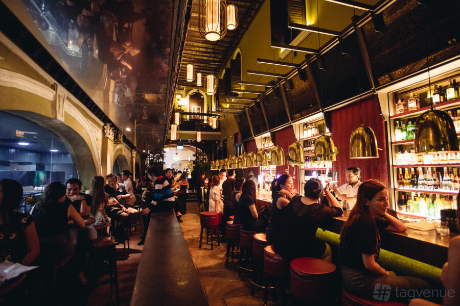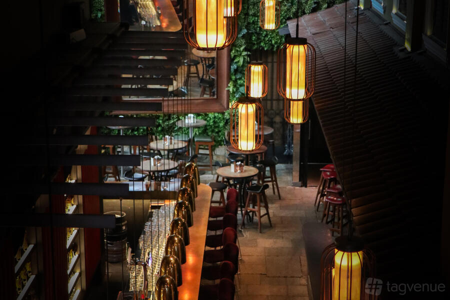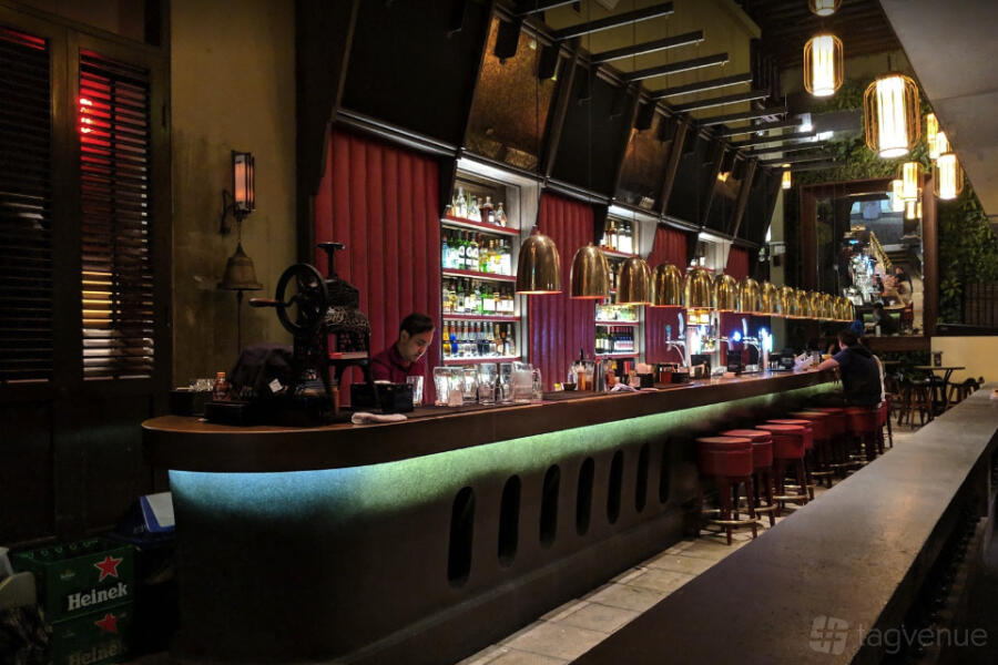 Alley bar is an elegant cocktail bar tucked between two heritage Peranakan shophouses along Emerald Hill. Featuring an airy ceiling dotted with hanging lamps, and a 15m-long brass bar, complemented by a striking gilt-framed mirror. Go on, shimmy down with your favourite tipple in hand.