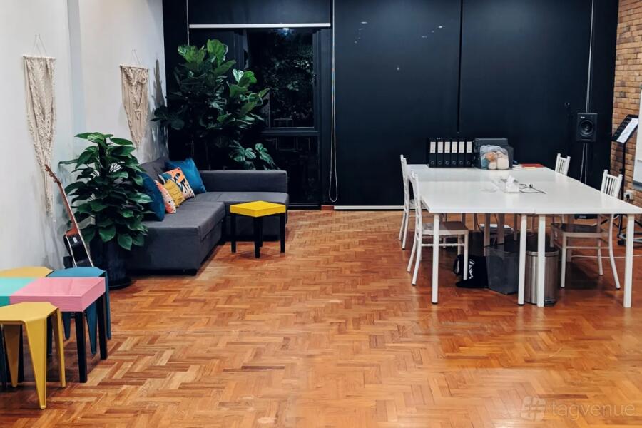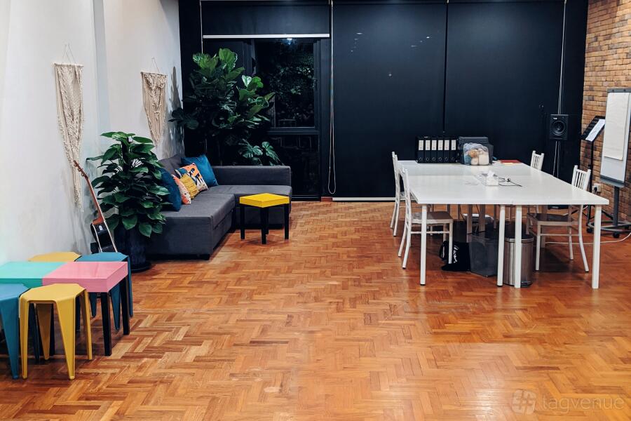 Situated at Joo Chiat Road, this space is both cosy and funky at the same time. A space that's able to transform for any occasion and it's perfect for art jammings, corporate events, dance, fitness, video shoots, parties, photography, team offsites, wedding, workshops and even co-sharing working space.