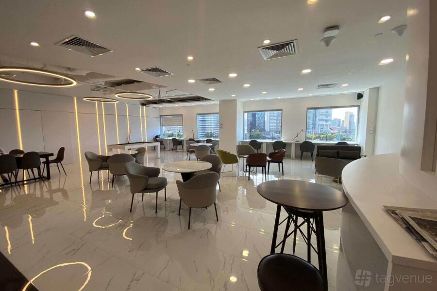 This office centre is equipped with a pool table, games area, large lounging space, massage chair, all whilst being surrounded by stunning views of the city skyline and a glimpse of the National Stadium . Now that’s what you can a good work-life balance.