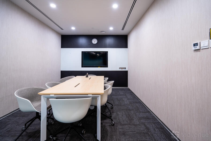 The Merlion Meeting Room is a conference setting room that accommodates 6 people in a boardroom setting. The space is small and will work well for business events for a small group. It is decorated in an elegant, functional, and simple style.