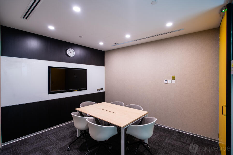 You can use comfortable office chairs, a well-lit table, a whiteboard, and a smart TV. The space will be perfect for your next business meeting and much more.