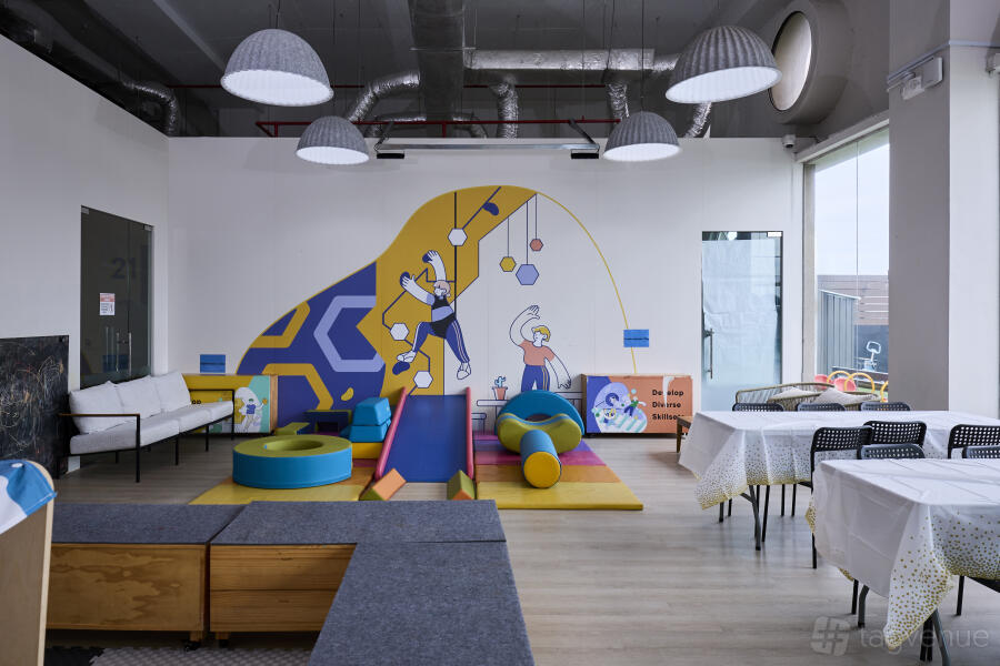 Choose from a number of different options for spaces to host your event: makerspaces for birthdays catering to arts, crafts and science and which can be used for other group events; multi-function rooms for dance, theatre and martial arts, open play spaces for toddler activities and an enormous terrace featuring a covered ball-play area and open spaces.