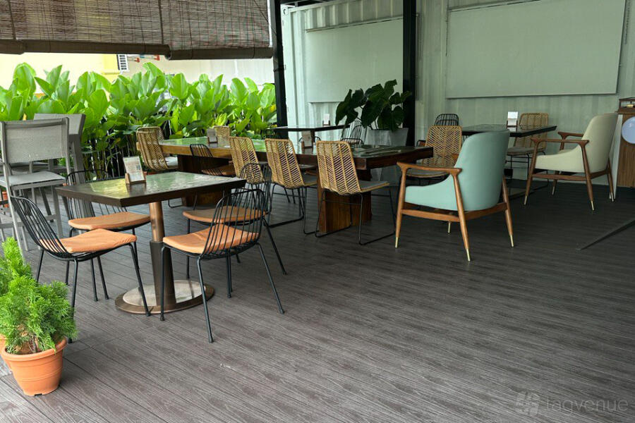 The space is well-lit as the cafe is built on an open space that allows natural sunlight to flood the cafe's interior and tastefully placed light fixtures illuminate the cafe's interior in the evening.