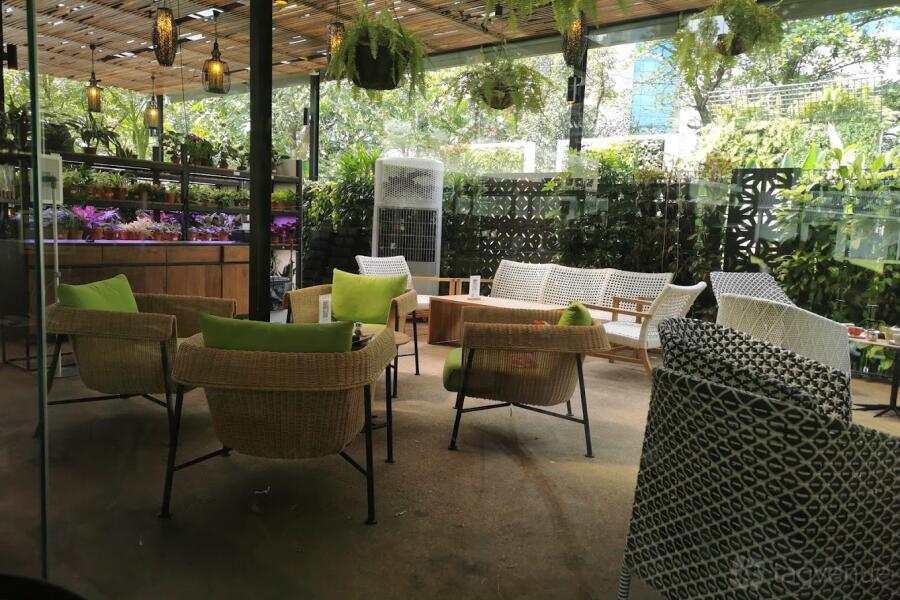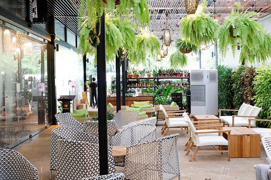 The indoor space is equipped with audiovisual technology, a projector and screen, adaptable seating arrangements, and air conditioning for comfort. Practical amenities like spacious parking and restrooms add to the convenience, while customizable garden-themed décor can bring a unique, personalized touch to any event.