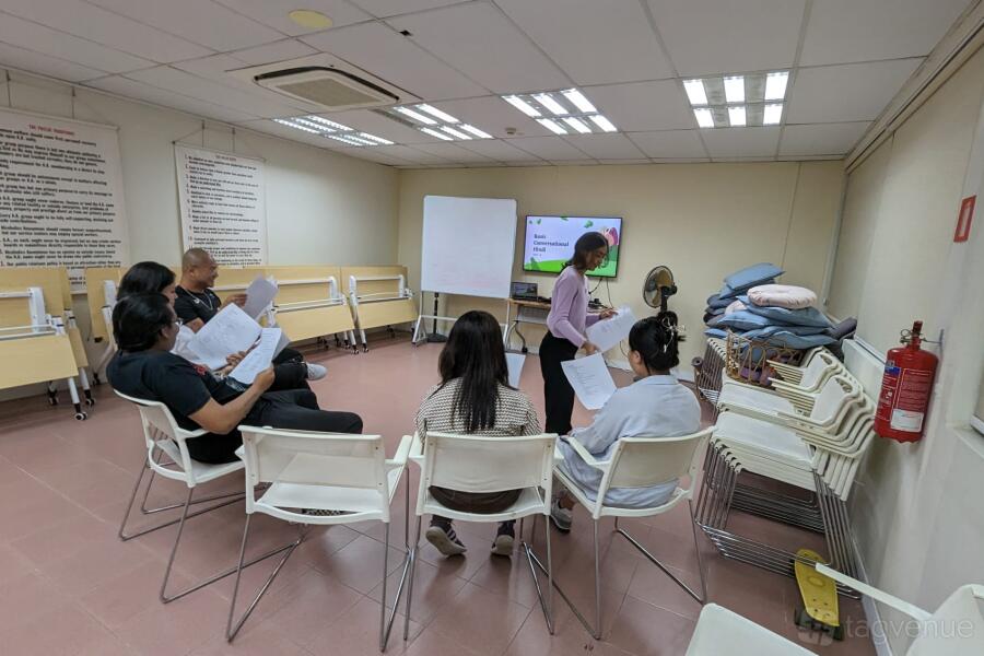 Our center was the former dance hall in a school, and is located behind Geylang Serai Market and a few minutes walk from Paya Lebar or Eunos MRT. Situated on the entire ground floor, our facilities include security, a free open-air car park, air-conditioning, Wi-Fi, a computer with Zoom capability, and toilets.