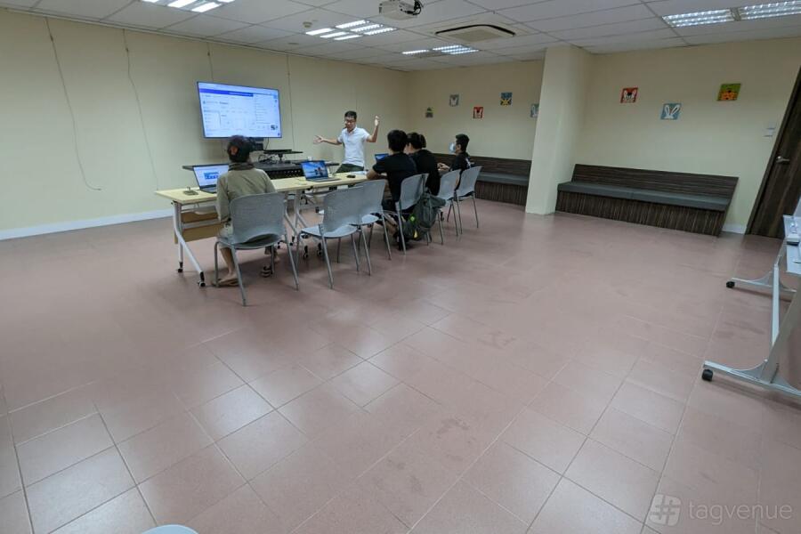 Our center was the former dance hall in a school, and is located behind Geylang Serai Market and a few minutes walk from Paya Lebar or Eunos MRT. Situated on the entire ground floor, our facilities include security, a free open-air car park, air-conditioning, Wi-Fi, a computer with Zoom capability, and toilets.
