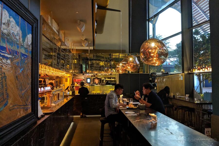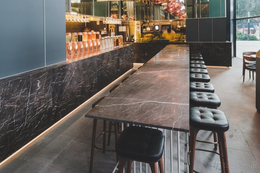 Designed by the same architectural firm Akira Kita Architecture, also the team behind the design concepts of Esquina and Luke’s Oyster Bar & Chop House, LIBC @ South Beach’s interior is decorated in a sleek and muted color palette of grey, coppery gold and brown marble, and accented with wood elements to emulate an experience of medieval times.