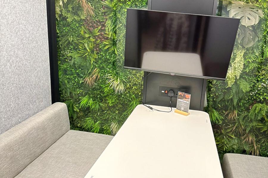 Whether you seek a secluded spot for confidential conversations or a cozy setting for small gatherings, our meeting and private pods are ideal solutions, accommodating anywhere from individual meetings to groups of four.