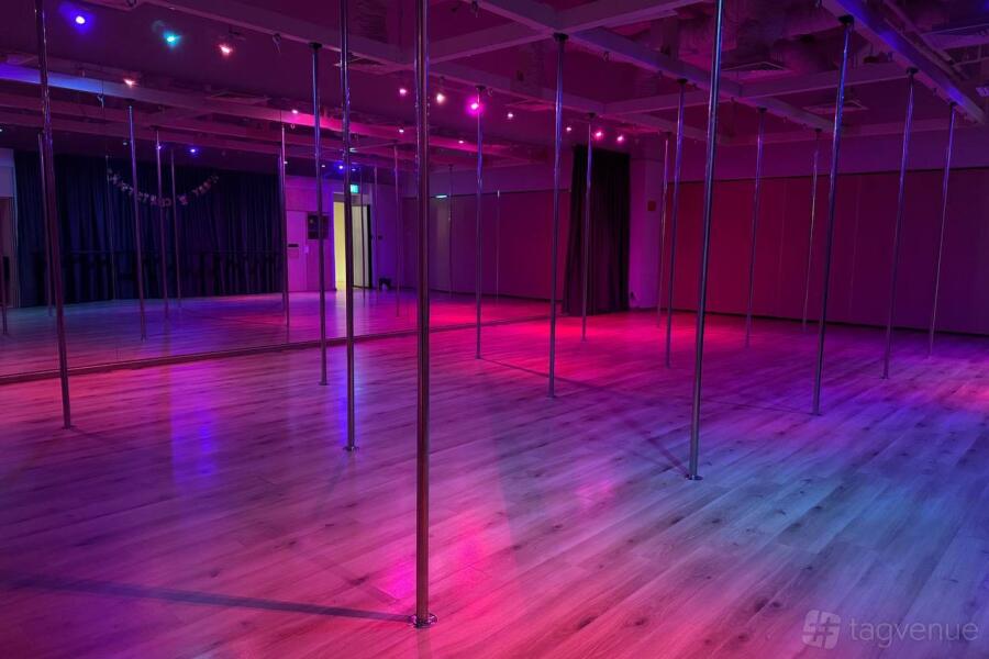 Our studio features a fully-equipped pole dance studio with removable poles, allowing for easy conversion into an open space for various events and activities, a projector screen in one of our rooms, perfect for movie screenings, presentations, and more, and mood lighting adjustable via the Philips Hue App, setting the tone for any occasion